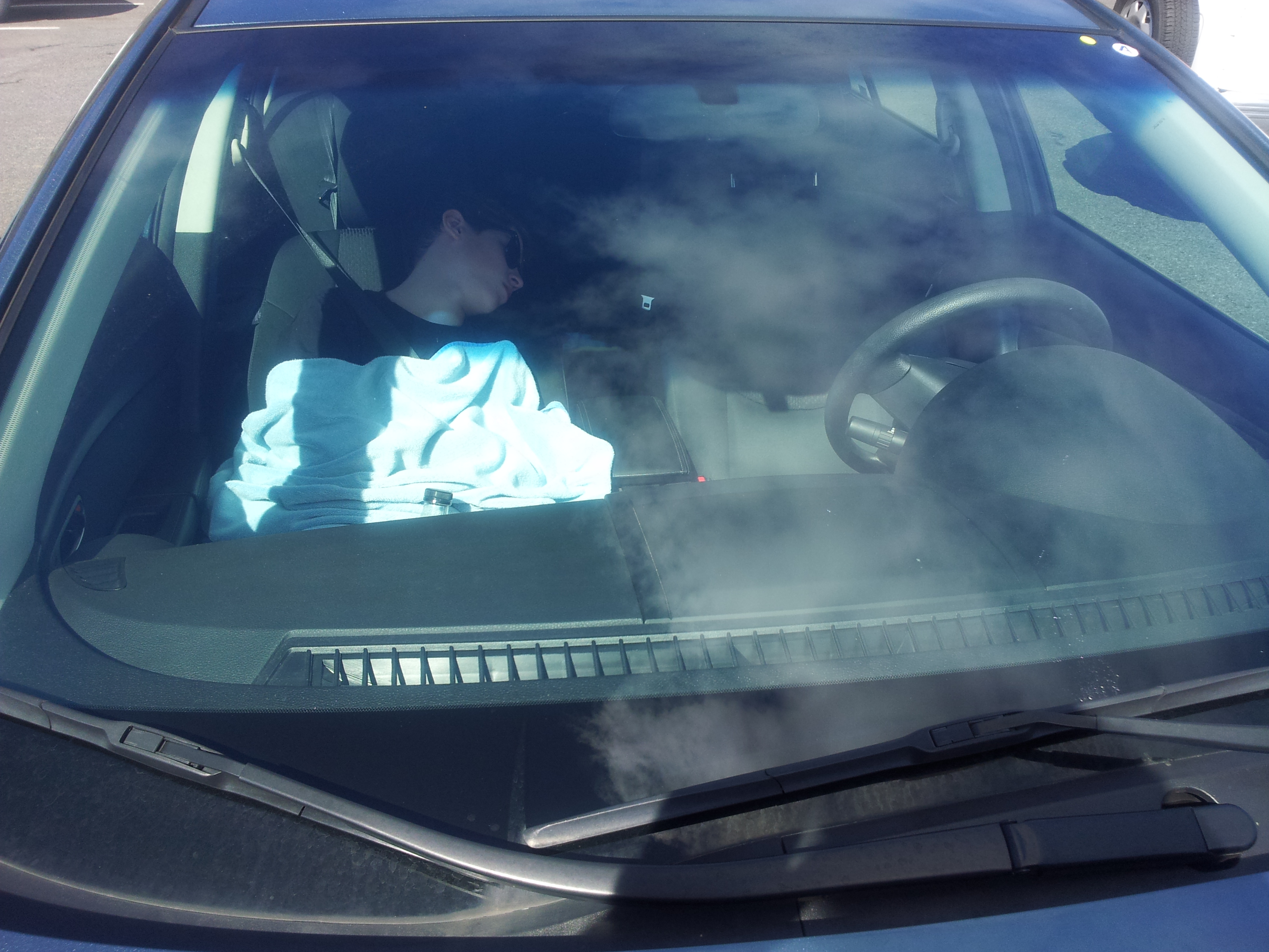 Noah is sick and sleeping in car on way to Hanauma Bay